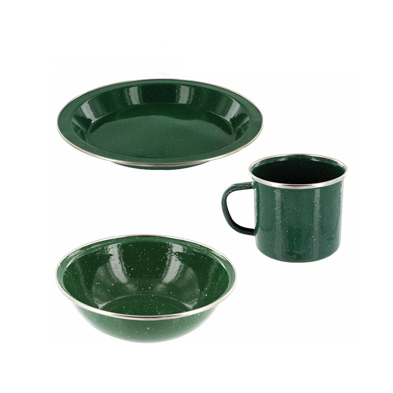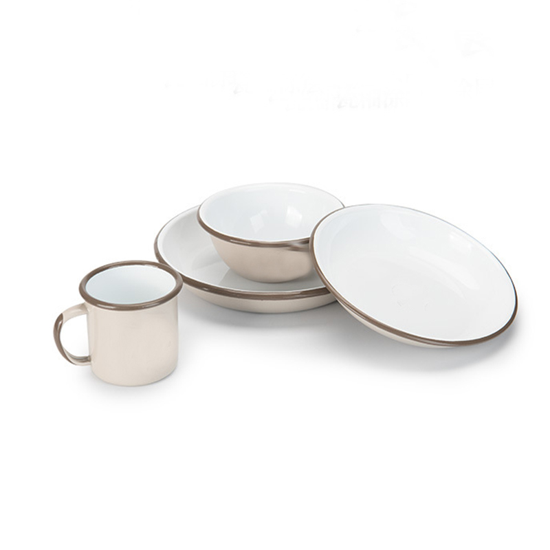 Product name | Custom enamel camping set | Size | 8cm enamel mug +15cm bowl +24cm plate | Capacity | 350ml available | Material | carbon steel with enamel coating | MOQ | 3000 pcs | Sample time | 7 working days | Packing | egg tray, hangtag, white box, brown box, color box and so on | Certification | LFGB, FDA and so on | Payment terms | Trade assurance, T/T, L/C, Western union, Paypal and so on |